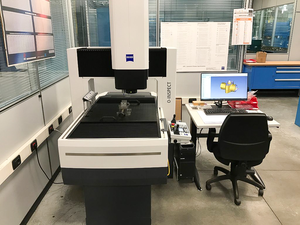 Quindi, la precisione dei pezzi prodotti si riflette nell’effettiva fase di utilizzo all’interno di impianti e strutture complesse, spesso formate da decine o centinaia di altre componenti. Lo stress che subiscono gli elementi di un impianto o di un macchinario rappresentano un nodo focale, perchè il difetto della componente può causare nel tempo un’inefficienza generale. Per questi motivi, i nostri prodotti devono garantire un’alta funzionalità operativa e una produzione esente da difetti. In base a questo obiettivo, abbiamo recentemente introdotto un macchinario avanzato nel laboratorio metrologico interno, denominato ZEISS O-INSPECT, tra i migliori al mondo.